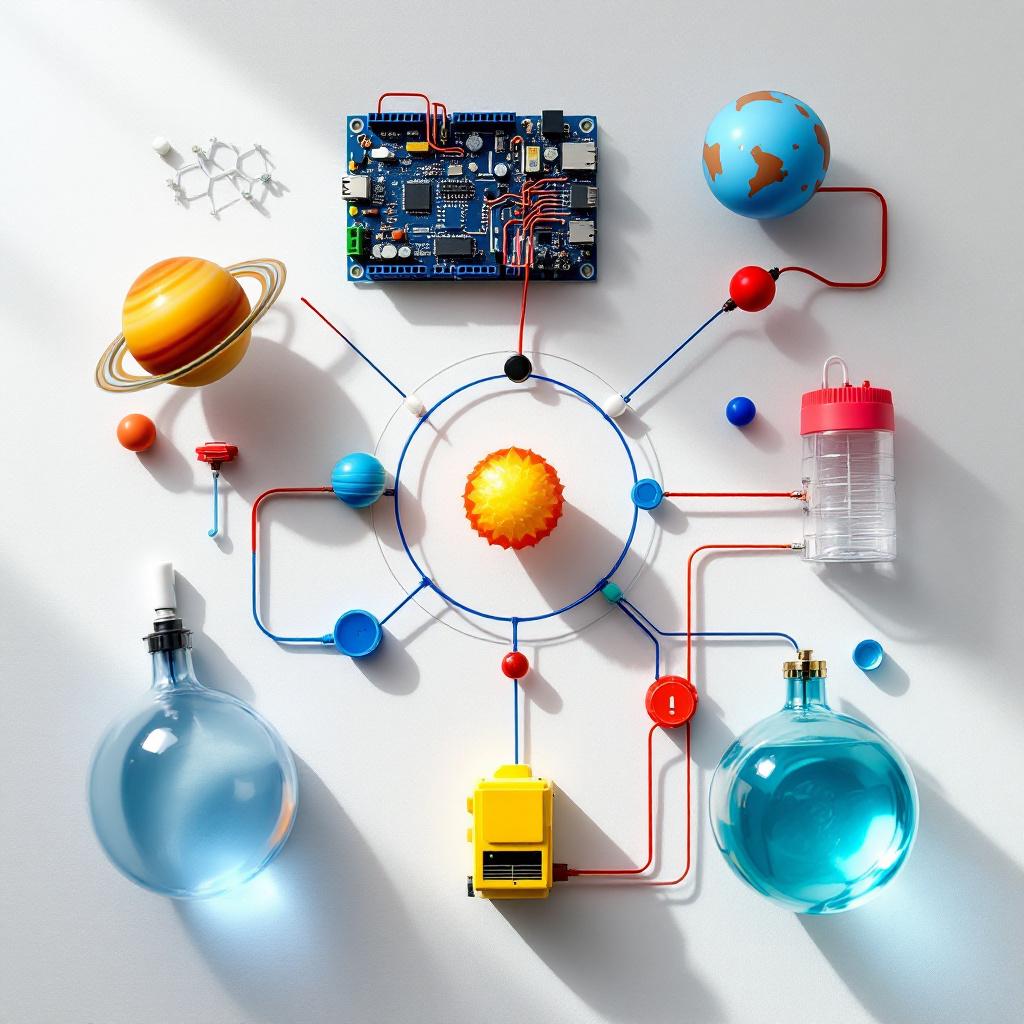Activity Components Includes 5 hands-on activities: Solar System Model (10 planets), DIY Circuit Board (8 LED lights, 3V battery), Water Cycle Experiment (1L water reservoir, evaporation chamber), Build Your Own Bridge (20 wooden sticks, 50 connectors), and Chemical Reaction Volcano (2 chemical packets, volcano mold).